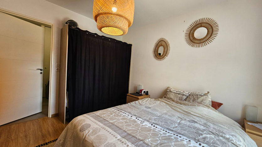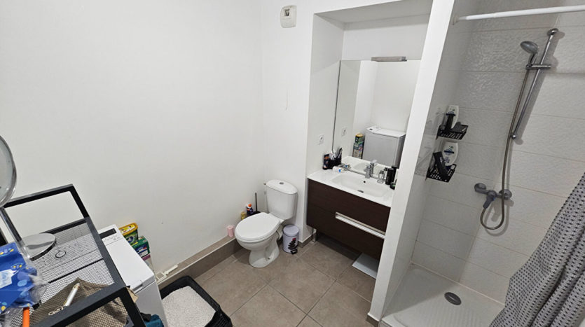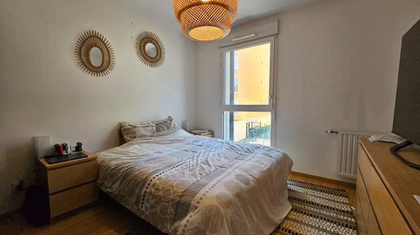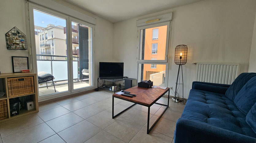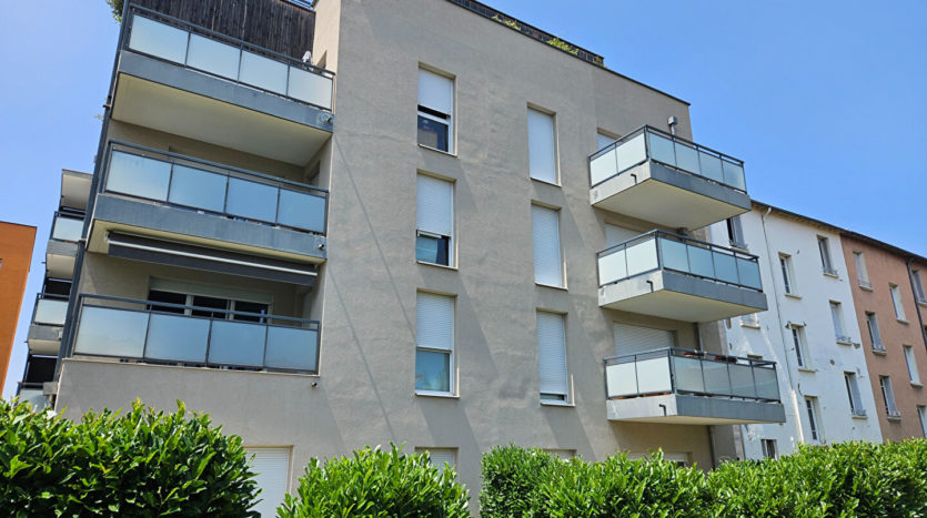 Rue Florent, au calme, au premier étage d’un immeuble récent encore couvert par la garantie décennale, T2 de 46 m² environ comprenant entrée, cuisine aménagée et équipée ouverte sur séjour, SDE avec WC, chambre et balcon.