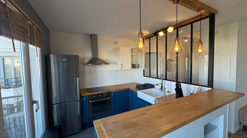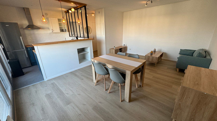 88 bis, rue Commandant Charcot, en avant dernier étage d’un immeuble de 2001, T2 meublé de 48,39 m² comprenant entrée, cuisine aménagée et équipée ouverte sur séjour, chambre avec dressing et SDB attenants, WC séparés et balcon.