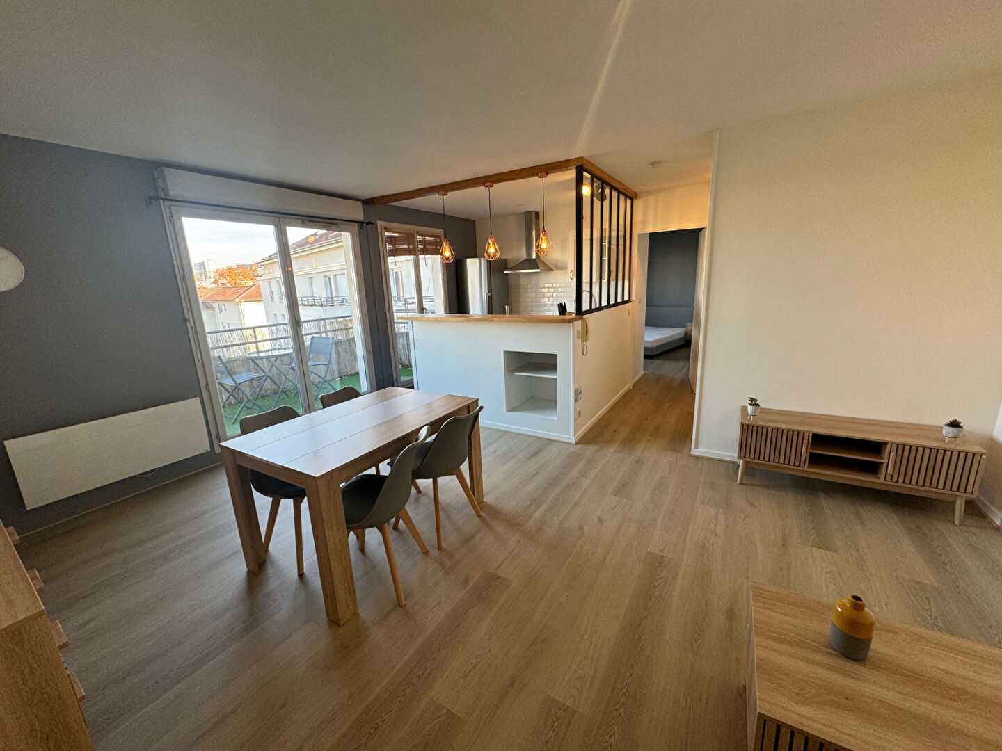 Pièce de vie de 26 m², donnant sur balcon à vivre de 7 m².