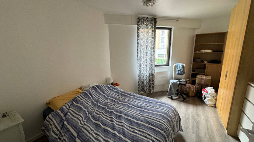 56, rue Maurice Flandin, au 1er étage d’un immeuble entretenu avec ascenseur, T3 de 70 m² proposé en meublé comprenant entrée, cuisine aménagée, séjour, dégagement, SDB, WC séparés, 2 chambres et balcon.