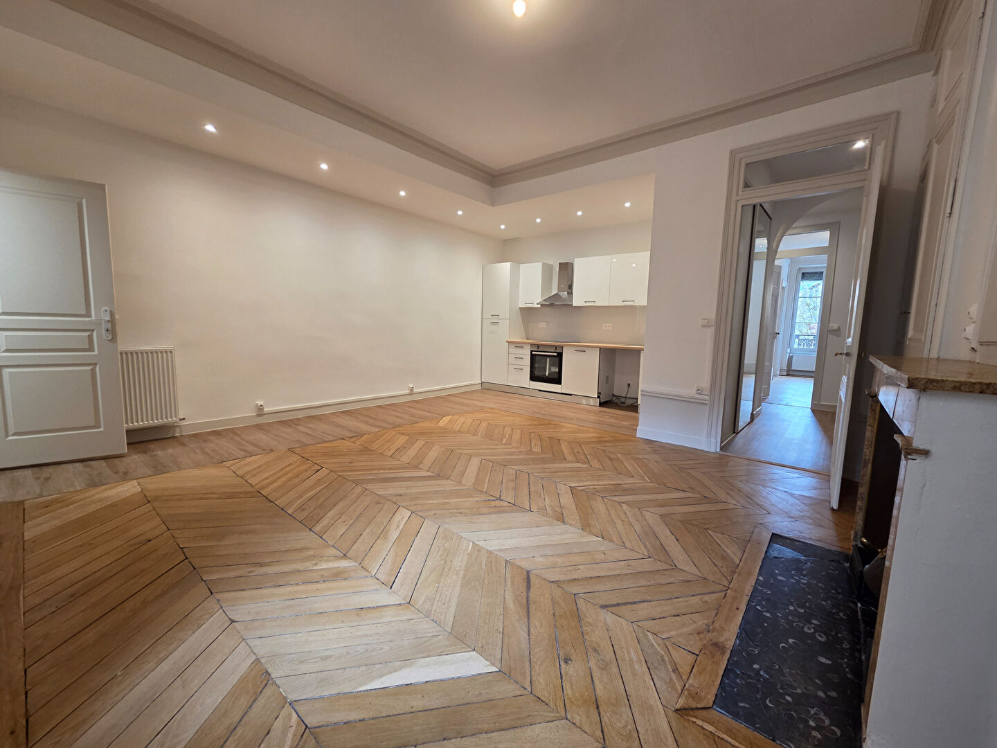 Rue Victor Hugo, métro Ampère, au premier étage d’un immeuble de caractère du XIXème, T4 de 86 m² environ comprenant entrée, pièce de vie avec cuisine ouverte sur séjour, 3 chambres, SDB et WC séparés.